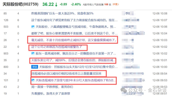 对于这次减持,网友纷纷高呼属于违规减持,原因是没有预披露:毫无诚信,10月份提前终止减持计划,这又偷摸减持了;这个公司之前就违规减持被警告了;违规减持必须以减持价格的2倍成本以上跟数量买回来;连续亏损3年未分红公司减持违规。